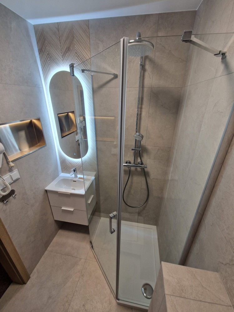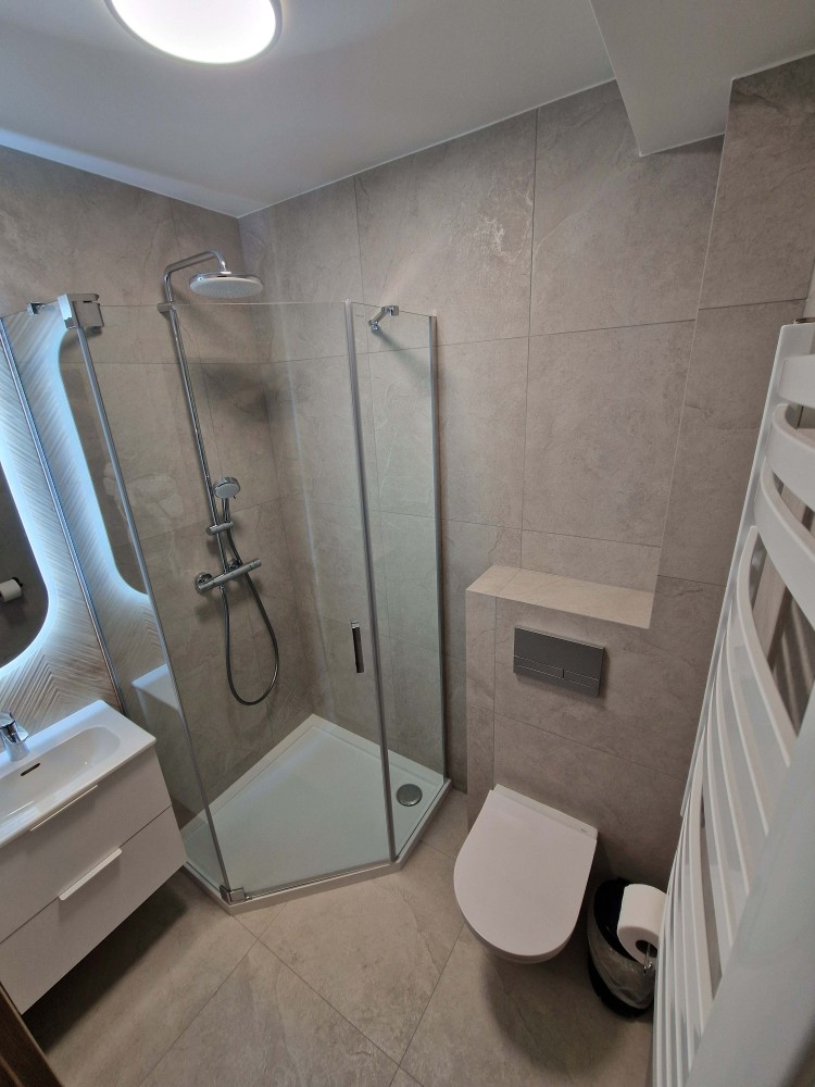 - Możliwość skorzystania z łóżeczka dla dziecka, krzesełka dla dziecka, krzesełka pod prysznic dla osób starszych.